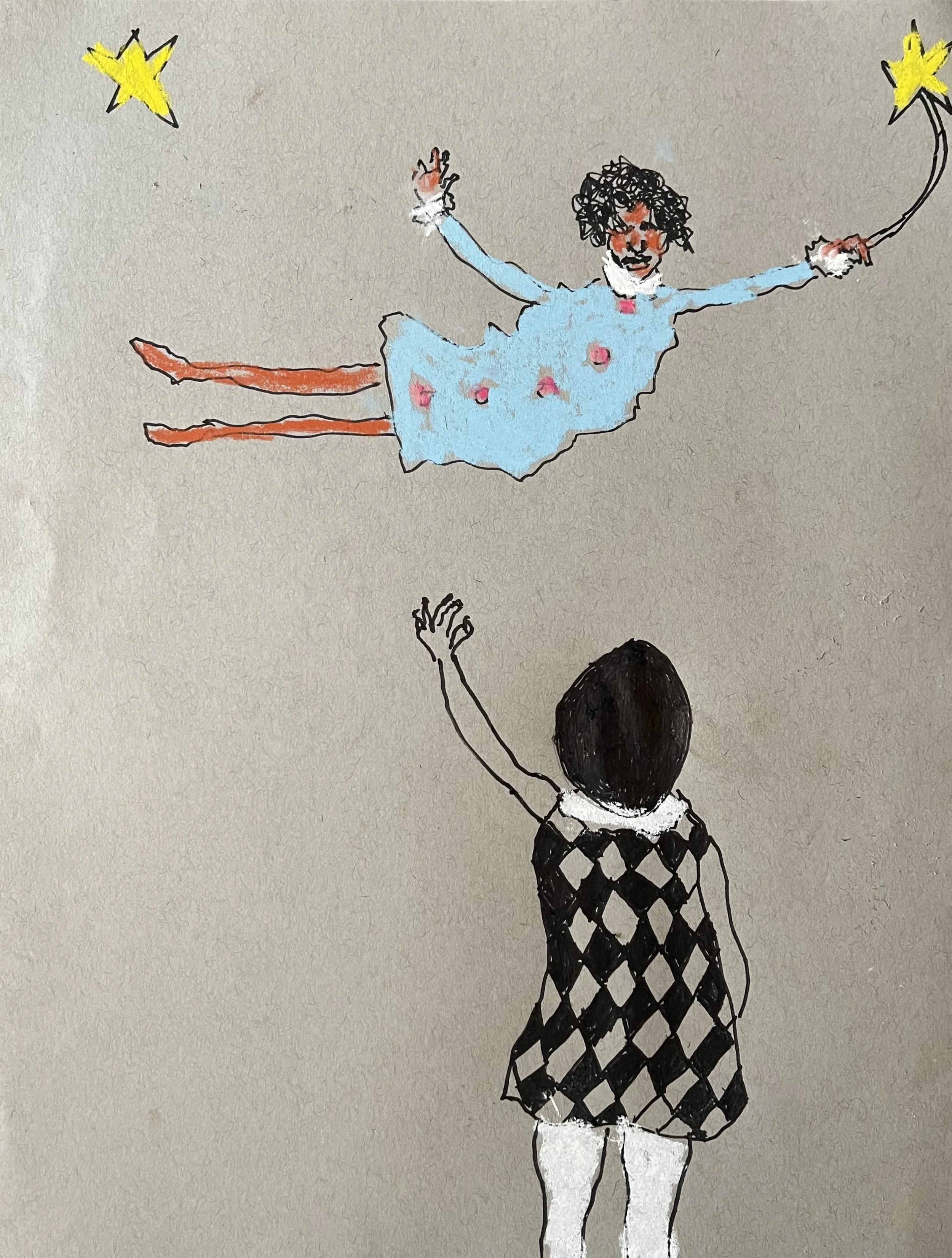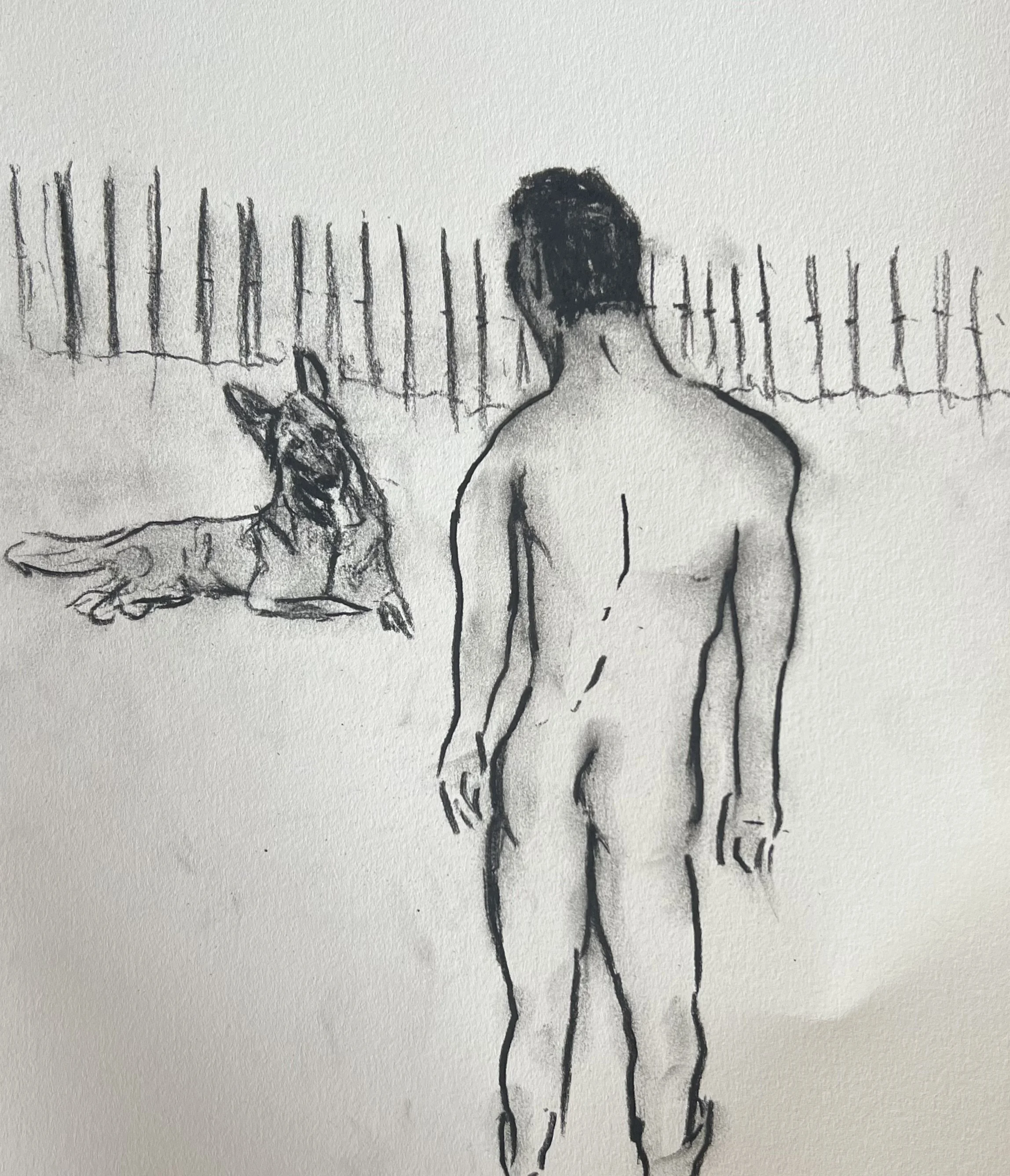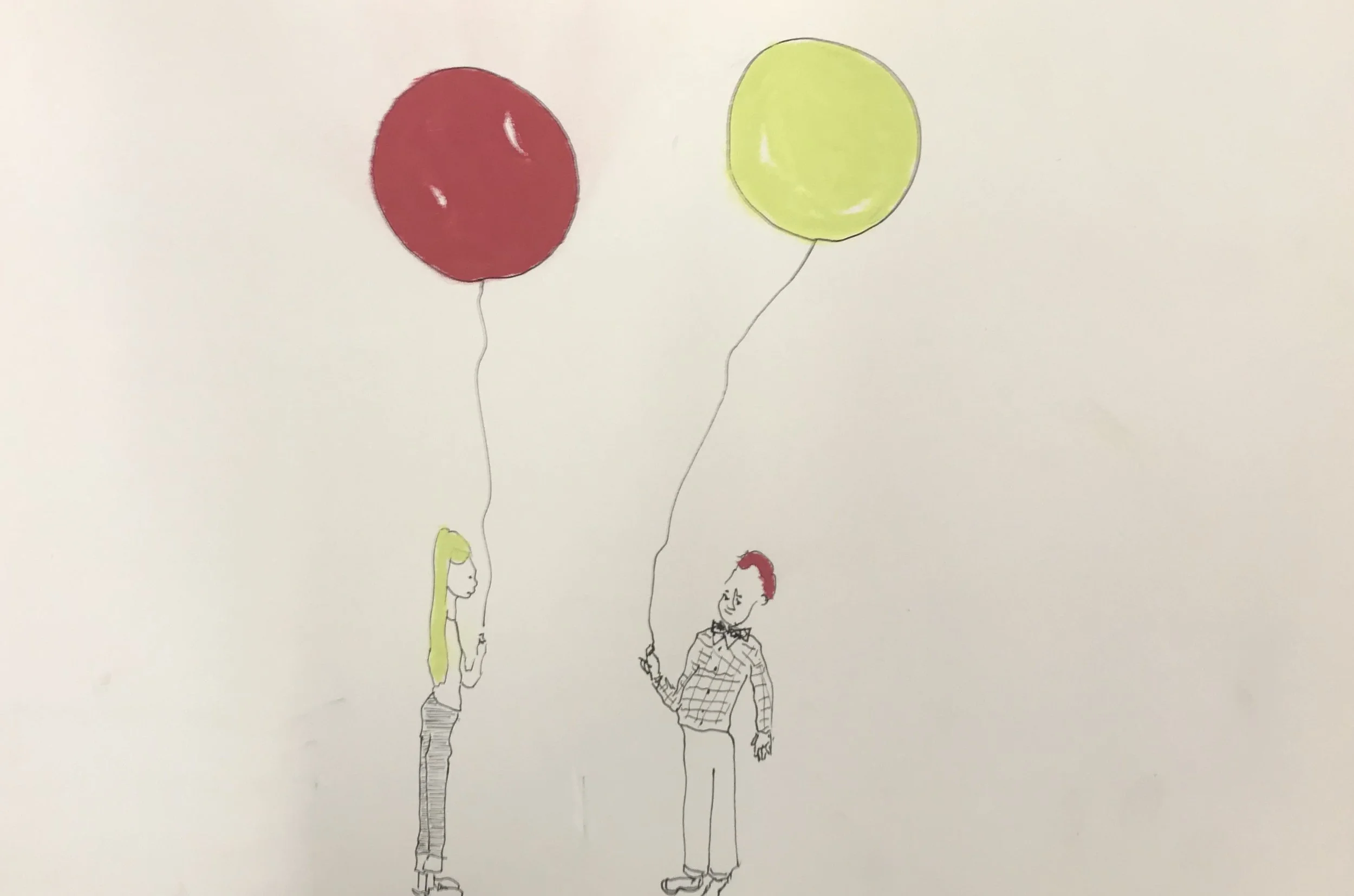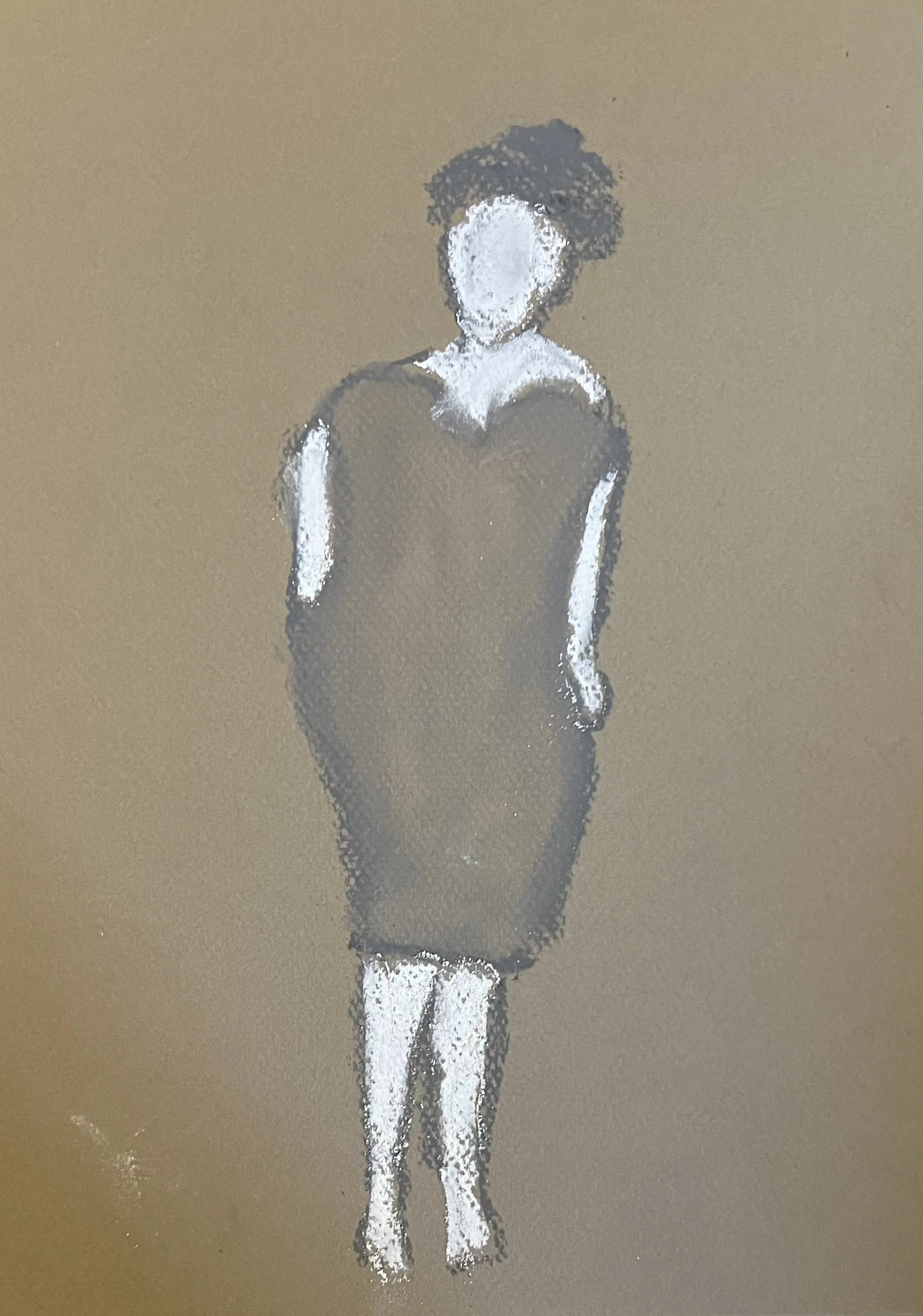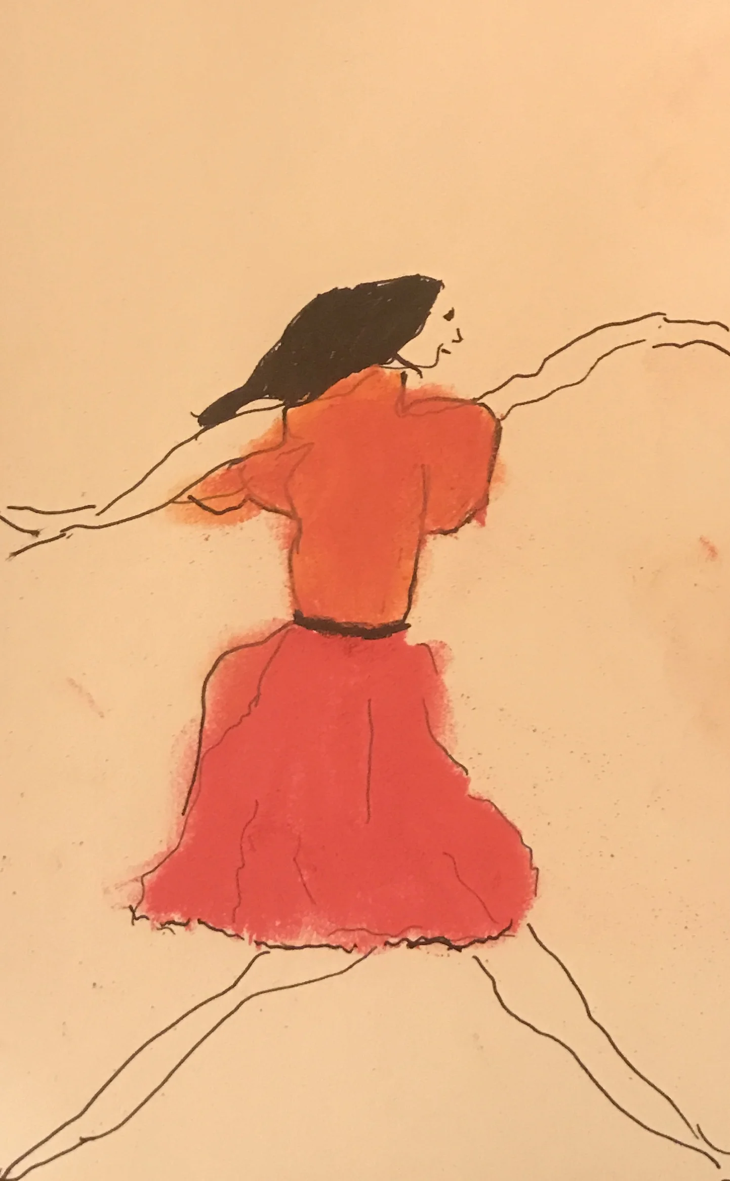 As the “about” page tells it, these come to Gary almost after the fact. A line and or stroke of color is placed on the page and often suggests what the next line or color will be, always in a depiction of one or more people. However, he can also be inspired whimsically by his environment; as one might see figures and faces in bathroom wallpaper, his eye might catch the corner of a screen window or a half-reflection in a mirror and shapes will be seen and a new drawing, a new person, suggested. Or he might be fancying a color—bright orange, let’s say—or a shape—a raised eyebrow-perhaps—and start from that slight preconception.